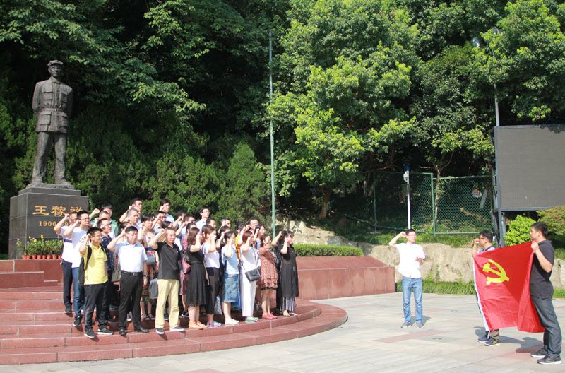 2018年7月21日上午8點半,市建投公司支部、江海通支部及大橋支部全體黨員前往王稼祥紀念園開展了一次開放式組織活動?;顒臃种販厝朦h誓詞、愛黨建平臺答題、參觀瞻仰紀念園三個部分。