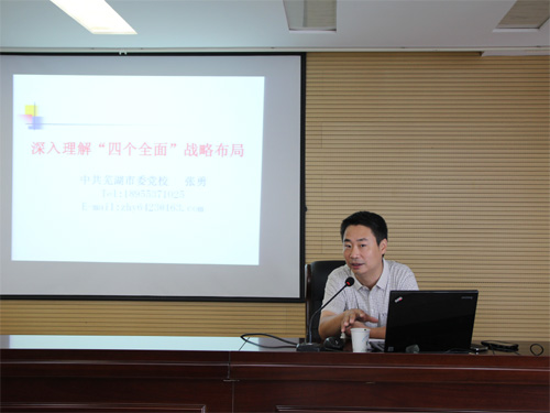 為進一步學習領會習近平總書記“四個全面”戰(zhàn)略布局的重要論述,8月22日上午,公司邀請市委黨校教育長、市委講師團副團長張勇教授為公司全體員工作了一場題為“深入理解四個全面戰(zhàn)略布局”的精彩報告。