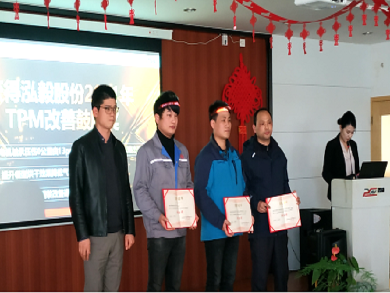 經(jīng)評(píng)選,大連嘉翔“智能制造——油壓機(jī)自動(dòng)上下料單元”改善、蕪湖普威“降低車身件焊點(diǎn)毛刺”改善、博耐爾“提升M1A冷凝器外觀一次出爐合格率”改善分別榮獲一二三等獎(jiǎng)。杰諾瑞“發(fā)電機(jī)軸承壓傷0公里由13ppm降低至0ppm”改善、泓鵠材料“提升模型烘干效果降低氣孔發(fā)生率”改善和金安世騰“安全帶拉脫”改善獲得鼓勵(lì)獎(jiǎng)。大連嘉翔張毅榮獲泓毅股份“2021年度TPM推行優(yōu)秀管理者”稱號(hào),杰諾瑞榮獲泓毅股份“2021年度TPM推行管理A級(jí)單位”稱號(hào)。隨后,對(duì)獲獎(jiǎng)?wù)?獲獎(jiǎng)單位舉行了隆重的頒獎(jiǎng)儀式,并邀請(qǐng)獲獎(jiǎng)代表上臺(tái)發(fā)言。