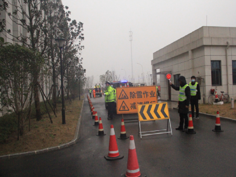 本次演練以接交警指令,銀湖路匝道積雪,需臨時封道清除積雪為背景,采取桌面推演與實(shí)戰(zhàn)演練相結(jié)合。共分為三個環(huán)節(jié),先是通過電子屏幕作銀湖路臨時封道作業(yè)桌面推演,全面展示交通應(yīng)急力量應(yīng)對多樣災(zāi)種綜合應(yīng)急處置能力。再到情報板信息發(fā)布模擬演練,針對路面積雪情況變化及時同步更新情報板提示信息,配合啟用高音喇叭提醒過往車輛。最后進(jìn)行道路除雪實(shí)操演練,指令下達(dá)后,應(yīng)急人員、機(jī)械車輛迅速趕到園區(qū)北側(cè)輔路集結(jié)完畢,在交管車輛的指引下,向模擬積雪路段行進(jìn),開始投入緊張的除雪鏟冰作業(yè)當(dāng)中。