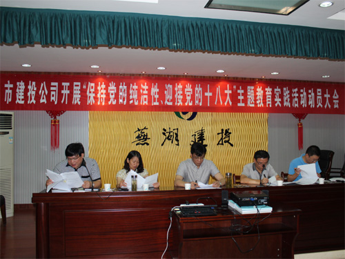 根據(jù)市委統(tǒng)一部署,公司于7月5日召開“保持黨的純潔性、迎接黨的十八大”主題教育實踐活動動員大會,公司全體黨員參加了會議。會議由公司副總經(jīng)理朱毅主持,公司紀檢組長汪學德向全體黨員傳達了市委相關(guān)文件精神,公司副總經(jīng)理方曉向全體黨員通報了公司主題教育實踐活動實施方案,公司副總經(jīng)理湯高繼帶領(lǐng)全體黨員學習了胡錦濤總書記在慶祝建黨九十周年上的講話、在十七屆中央紀委第七次全會上的講話及張寶順在省第九次黨代會上的工作報告等資料。全體黨員觀看了專題電教片《永葆黨的純潔性》等。